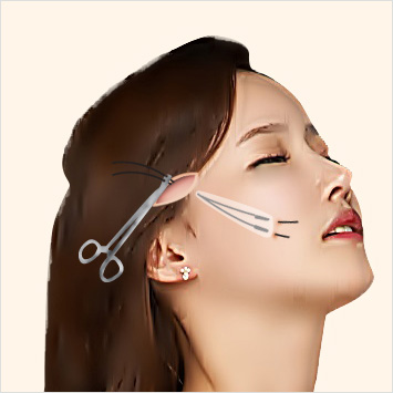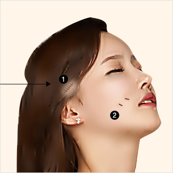 구레나룻 주변 절개를 통해 절개 흉터를 숨기면서 리프팅 수술을 진행하며, 절개 부위가 작아 흉터도 작고 최소 침습 시술로 조직 손상을 최소화하여 멍이나 부기가 적어 빠른 회복