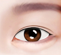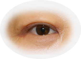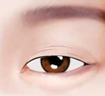 눈꼬리 부분이 처지면서 쌍꺼풀이 삼각형 모양으로 변형되고 윗눈꺼풀이 꺼진 경우에