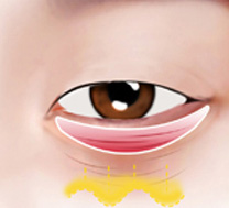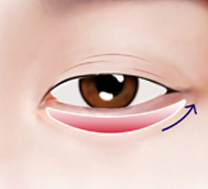 아래 눈꺼풀이 처지고 지방이 불룩하게 나온 경우 불룩한 지방을 재배치하고