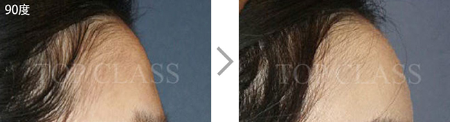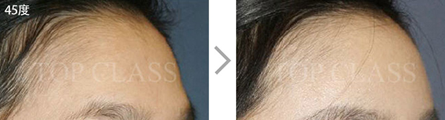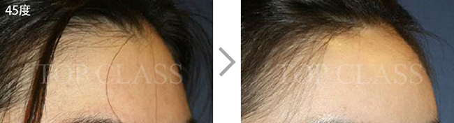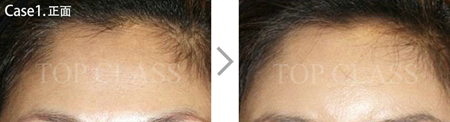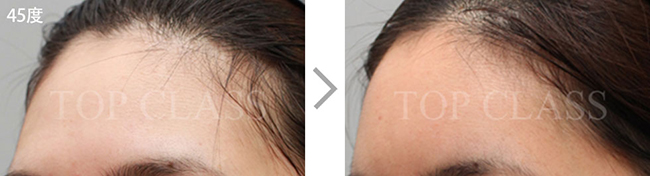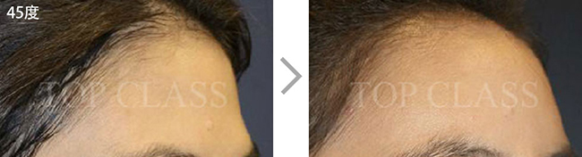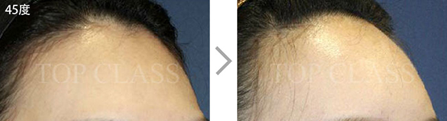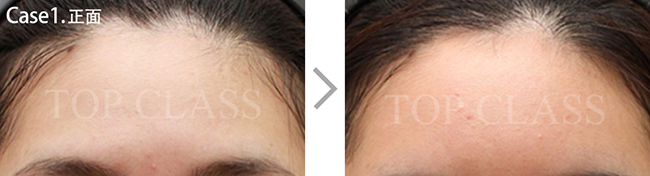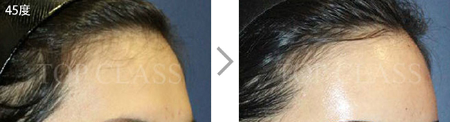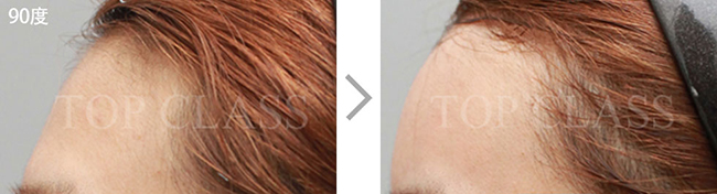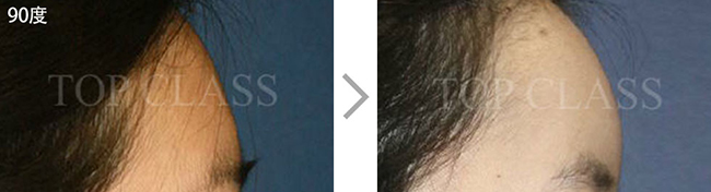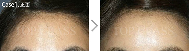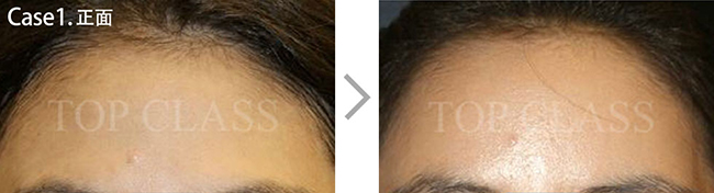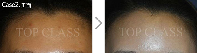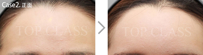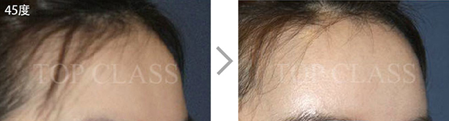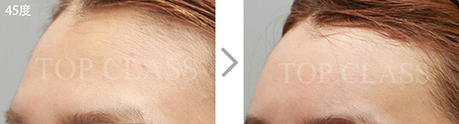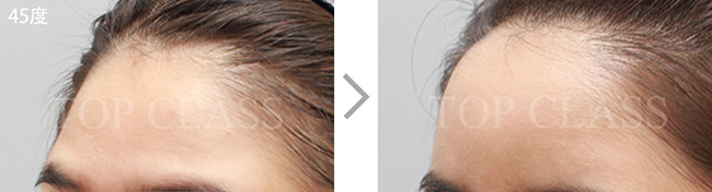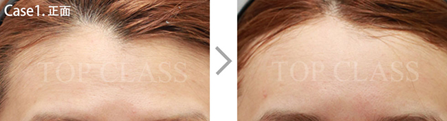比实际看起来宽的额头型,比起眉毛上侧额头上侧部位要更略扩的稍厚,使额头看起来不显宽,为自然地额头曲线而手术