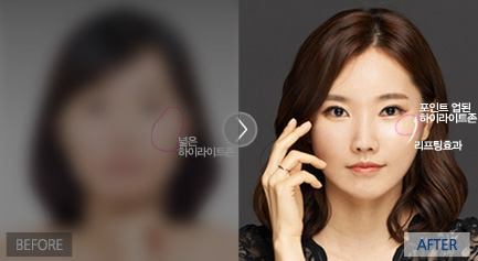 하이라이트를 작게 만들어 주는 포인트업테크닉으로 가장 진일보된 광대축소술을 시행하고 있습니다.