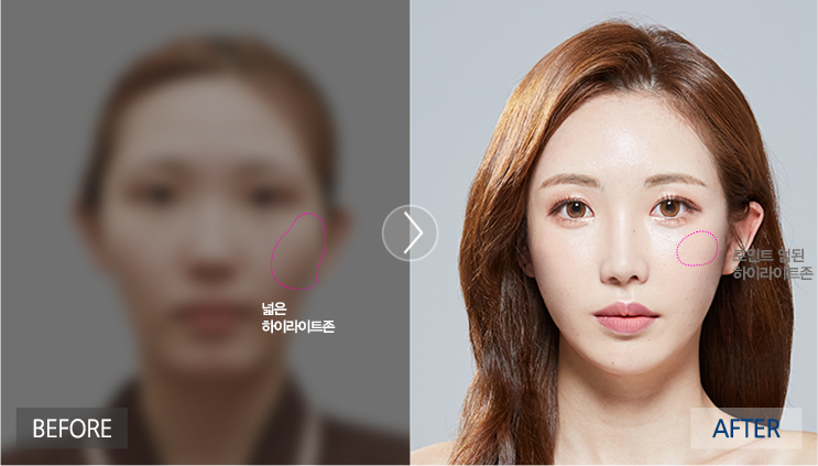 또한 하이라이트 존의 크기가 작을수록 입체적인 광대 축소 효과를 보여줍니다.