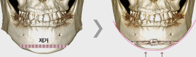 일반적으로 턱끝 축소술을 시행하게 되며 절골술을 통하여 과도한 부분을