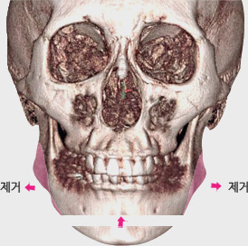 귀 밑으로 발달된 양 옆의 턱 뼈를 사각턱 축소술로 제거합니다.