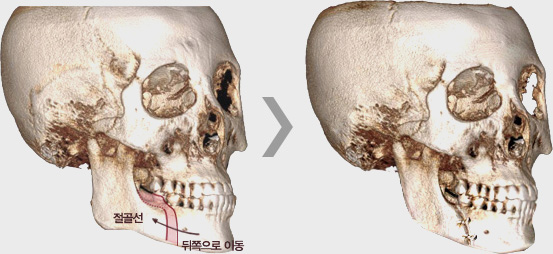 | 하 차조신경 손상을 막을수 있다 (아랫입술 감각이상 예방) | 하악각이 각지고 돌출된 경우 사각턱 증상이 심해질 수 있다. |